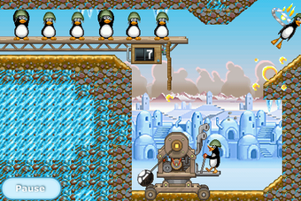Dans les 20 niveaux de cette démo, vous devez doser habilement le lancer de chaque pingouin à l'aide de la catapulte pour le faire rebondir sur la glace et éliminer les ours.